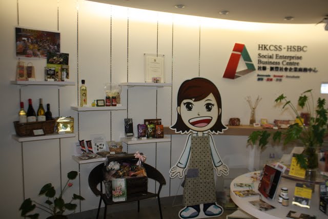 HKCSSの入り口にはご覧のようにたくさんの商品が並んでいます。これらはすべてHKCSSの支援している企業・団体が生産や販売をしているもの。現在まで約800の企業や団体を支援してきたそうです。