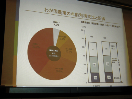 ドイツの農家所得は約200万円。うち補助金が100万円程度もあります。これは”景観維持”、”農業維持”が農家のためだけにあるのではなく、国と国民が非常に農業を重視しており、それらの維持に予算を割り当てることへの合意が国全体としてあるためなのです。フランスでは農家所得の8割が補助金で賄われています。日本の農家の所得平均は平成20年度で108万円ほど。特に米農家は全く儲からないという現状にあります。そうなれば、農業人口の減少は必然でしょう。