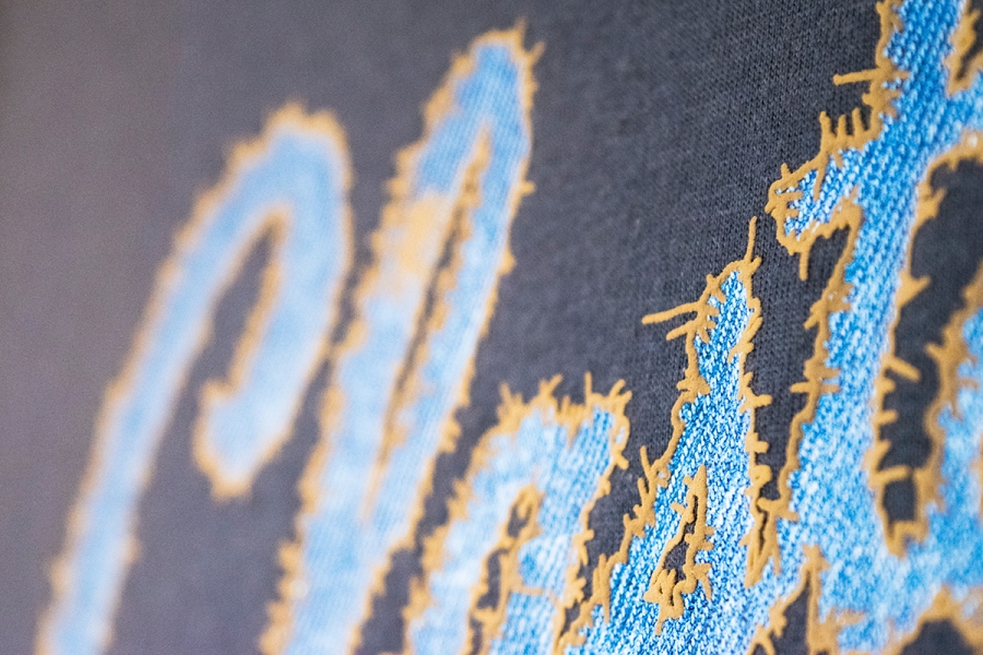 これまで、大手アパレルメーカーからの様々な高難易度の要求に対応しようと積み重ねてきた、スクリーン印刷職人さんの技術によって、他の会社では不可能な表現力を実現している。